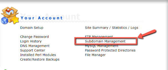 1. เลือกเมนู Subdomain Management