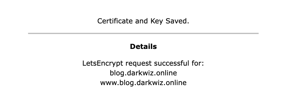 4. รอสักครู่ ระบบจะเเจ้งว่าได้สร้างเเละทำการติดตั้ง SSL เรียบร้อยแล้ว โดยจะพบรายละเอียดดังนี้