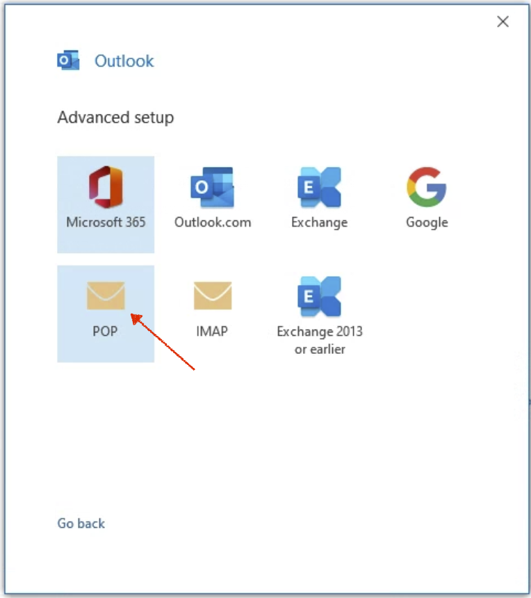 - หลังจากกด Connect แล้วโปรแกรมจะให้เลือก Account Type ที่จะใช้งาน ในที่นี้จะเลือกเป็น POP