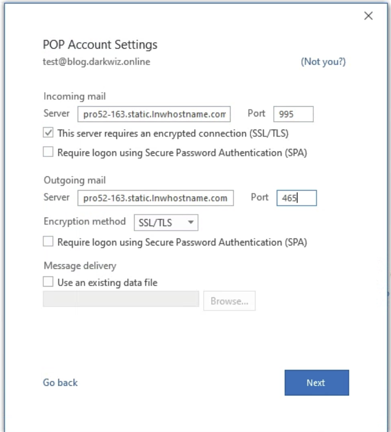 การตั้งค่า Outlook 2019 เพื่อใช้งานกับอีเมลของเซิร์ฟเวอร์ P&T Hosting